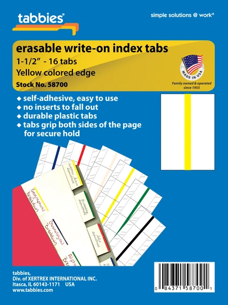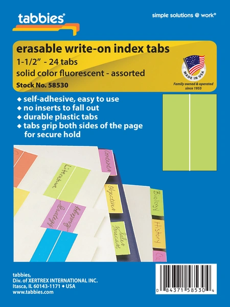 1-1/2" Erasable Write-On Index Tabs – Reusable & Colorful Organization